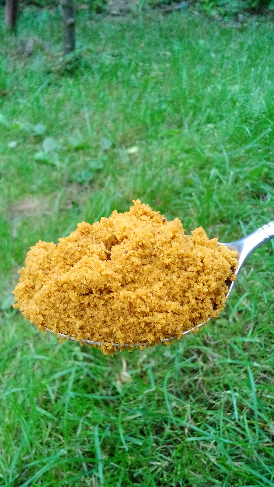 1 Esslöffel Ammovit NeuAmmovit ist eine bräunliche Substanz, die vom Aussehen und der Konsitstenz her zunächst an feuchten Sand erinnert.