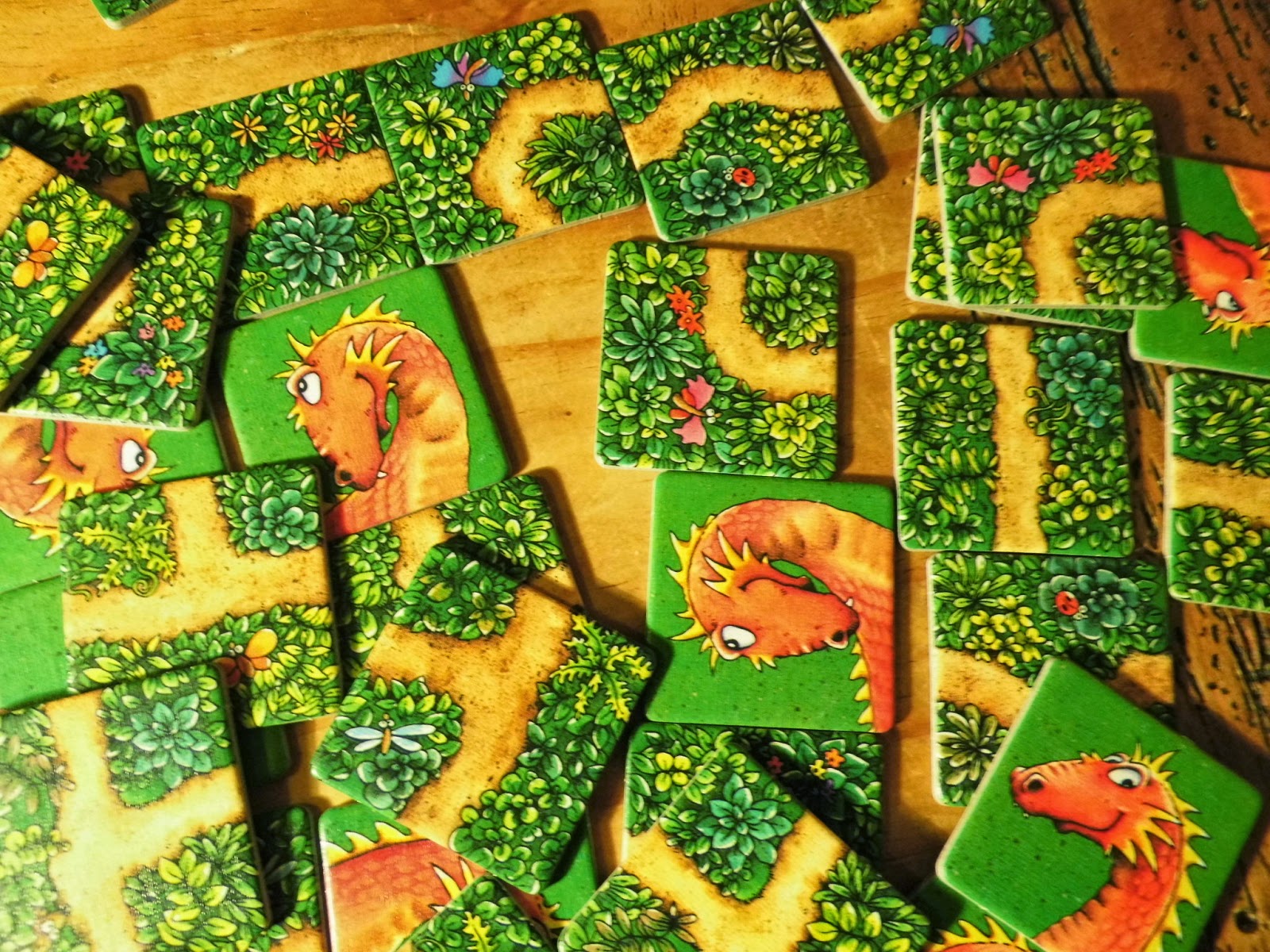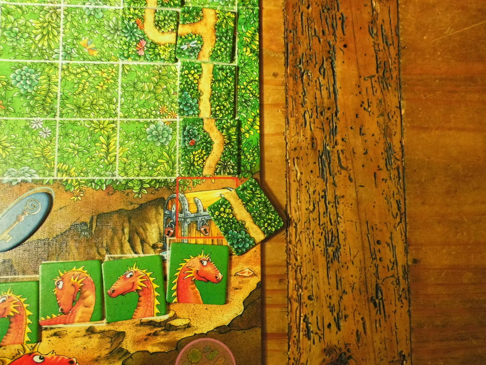 Wird eine Drachenkopf-Karte gezogen, wird diese aus das entsprechende Feld am unteren Rand des Spielfeldes gelegt. Sind alle Drachenfelder mit Drachenkopf-Kärtchen gefüllt, bevor ein durchgehender Weg vom Waldrand zur Schatztruhe existiert, hat der Drache gewonnen. Allerdings kann man den Drachen mit der Süßigkeiten-Karte kurzfristig ablenken, sofern man diese schon eingesammelt hat.