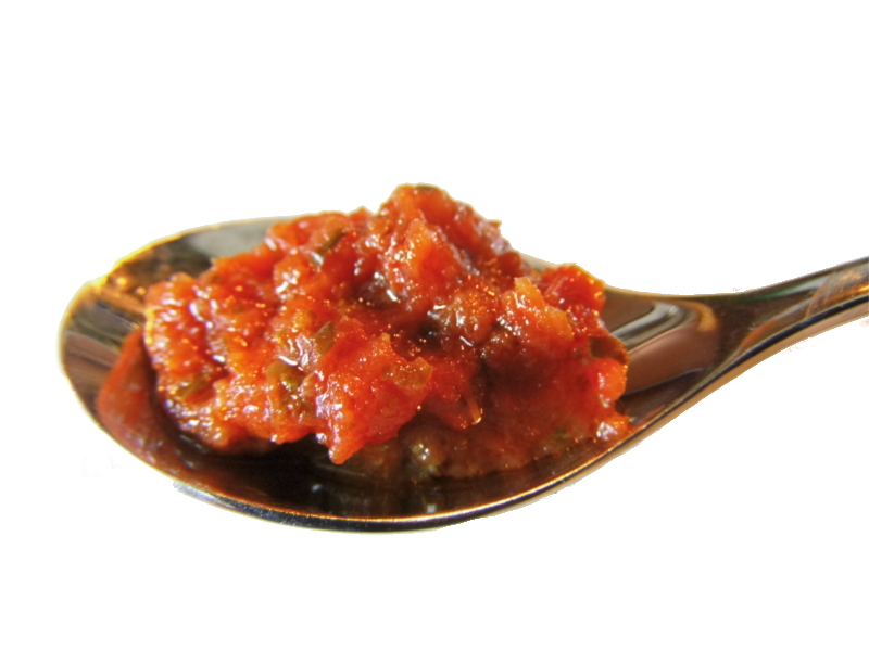 Auch bei dieser Sorte überrascht mich beim Öffnen ein intensiver Duft. Und auch, wenn es nicht drauf steht, könnte ich wetten, dass es sich bei den Zutaten um gegrilltes Gemüse handelt. Ein hoher Anteil Tomatenfruchtfleisch sorgt für die dominierende rote Farbe, es sind aber weitere 23,2 % Gemüse im Glas, nämlich rote und gelbe Paprika, Aubergine und Zucchini – sowie diverse Kräuter und Gewürze. - Pesto Rustico ‚Aubergine mit Kräutern‘
