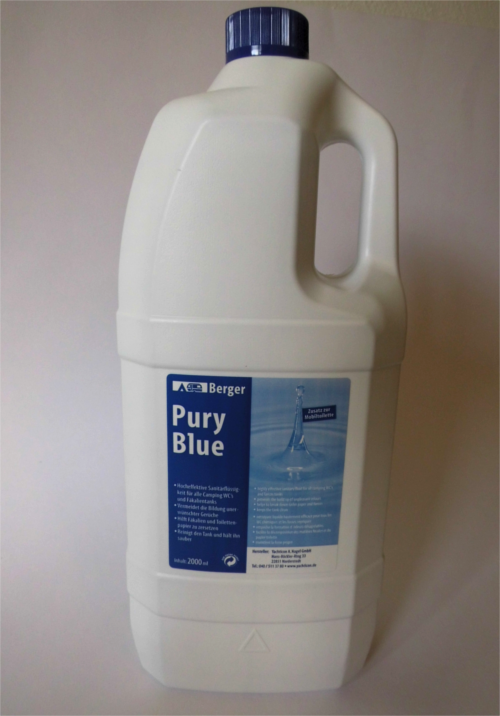 Pury Blue ist ein Sanitärzusatz, der dem Fäkalientank von Campingtoiletten zugesetzt wird und dort helfen soll, Fäkalien sowie Toilettenpapier zu zersetzen, unangenehme Gerüche zu unterbinden und den Tank sauber zu halten.